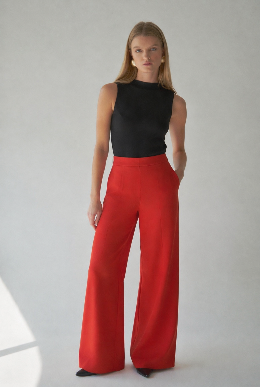 These classic trousers feature an elegant and timeless fit, designed with a clean, versatile silhouette that elevates any outfit. The straight cut and high-waisted design elongate the figure, while the invisible back zipper creates a refined, seamless finish. Ideal for both polished everyday looks and sophisticated styling.